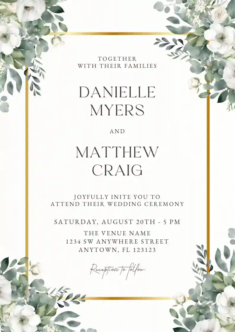 白い結婚式招待状テンプレートでデザインを無料で作成Canva。