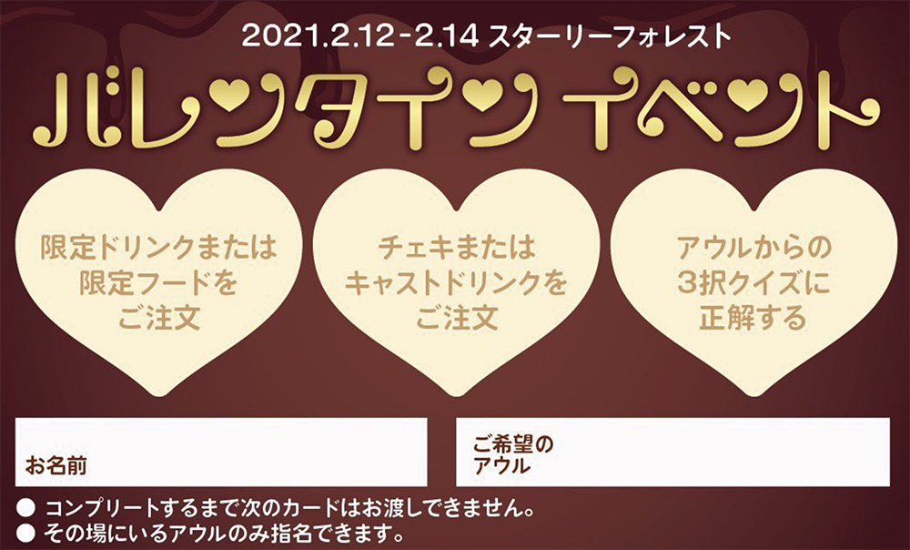 🍫2月12日〜14日 バレンタインEV🍫 – Starry Forest スターリーフォレスト。