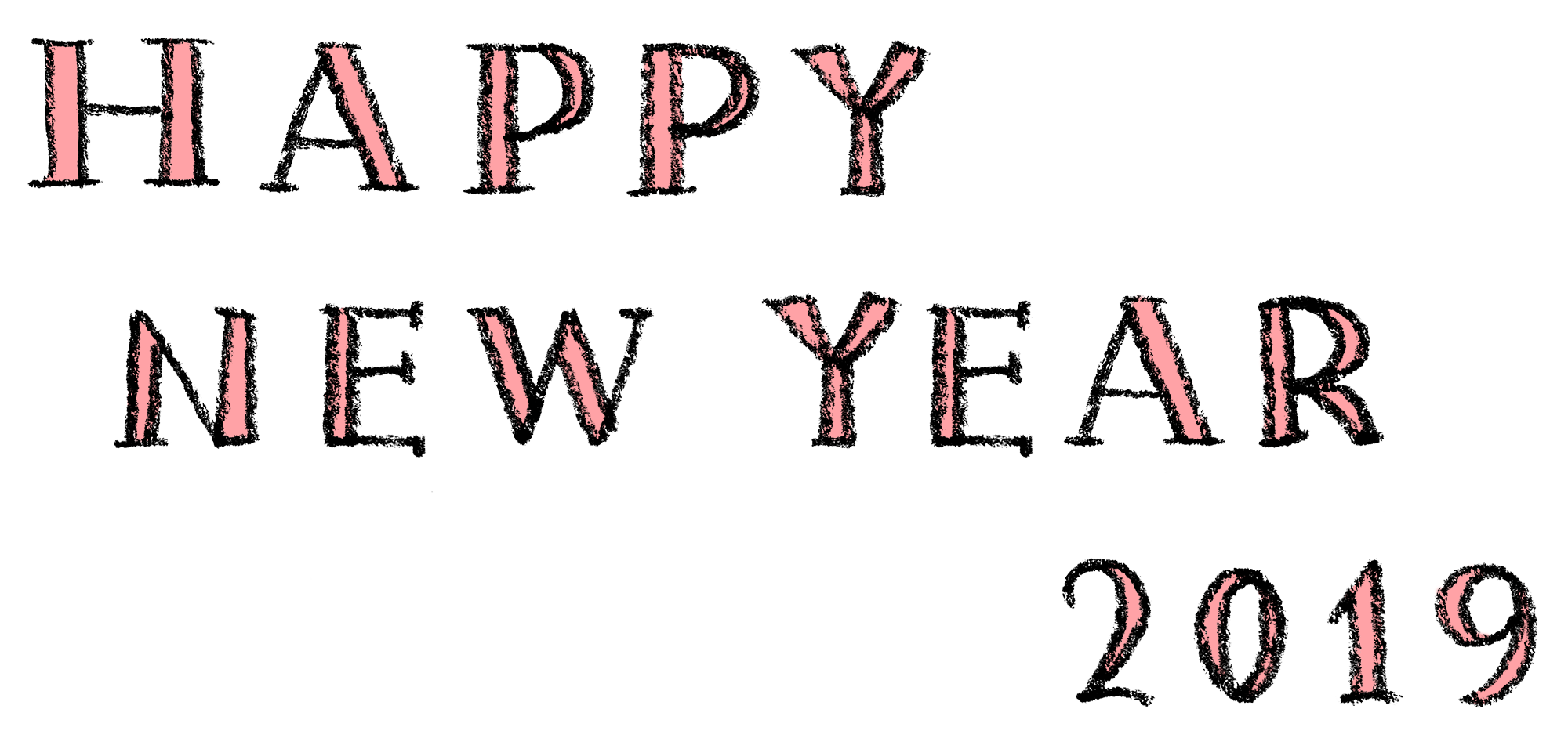 HAPPY NEW YEAR 2019・おしゃれでかわいい手書き文字えんぴつと画用紙。