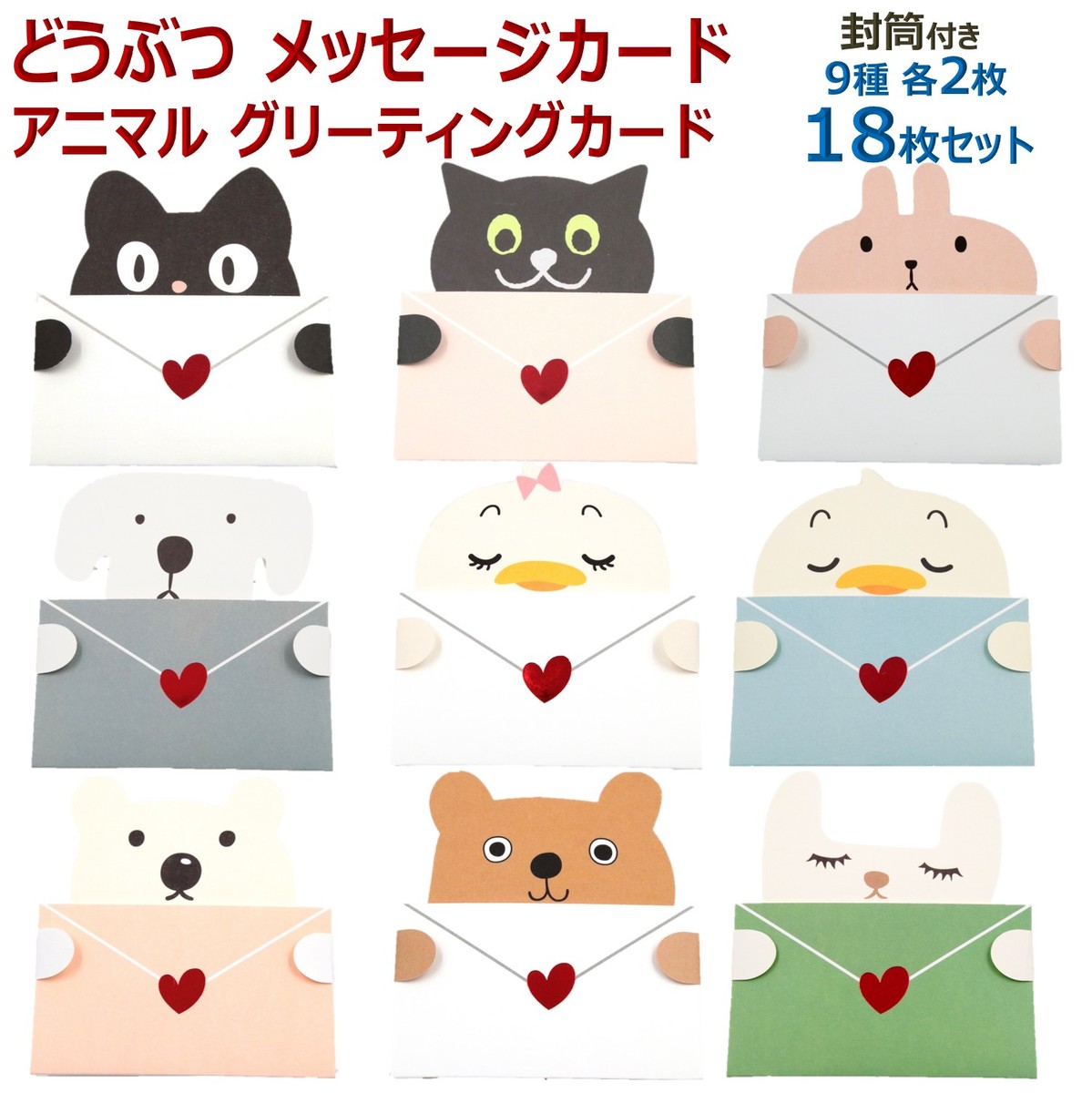 楽天市場 どうぶつ カード メッセージカード アニマル グリーティングカード バースデーカード 誕生日 バースデー メッセージ 誕生日カードグリーティング レターセット 結婚祝い 出産祝い 手紙セット 母の日カード 封筒付き9種各2枚・18枚セット: XPデザイン。