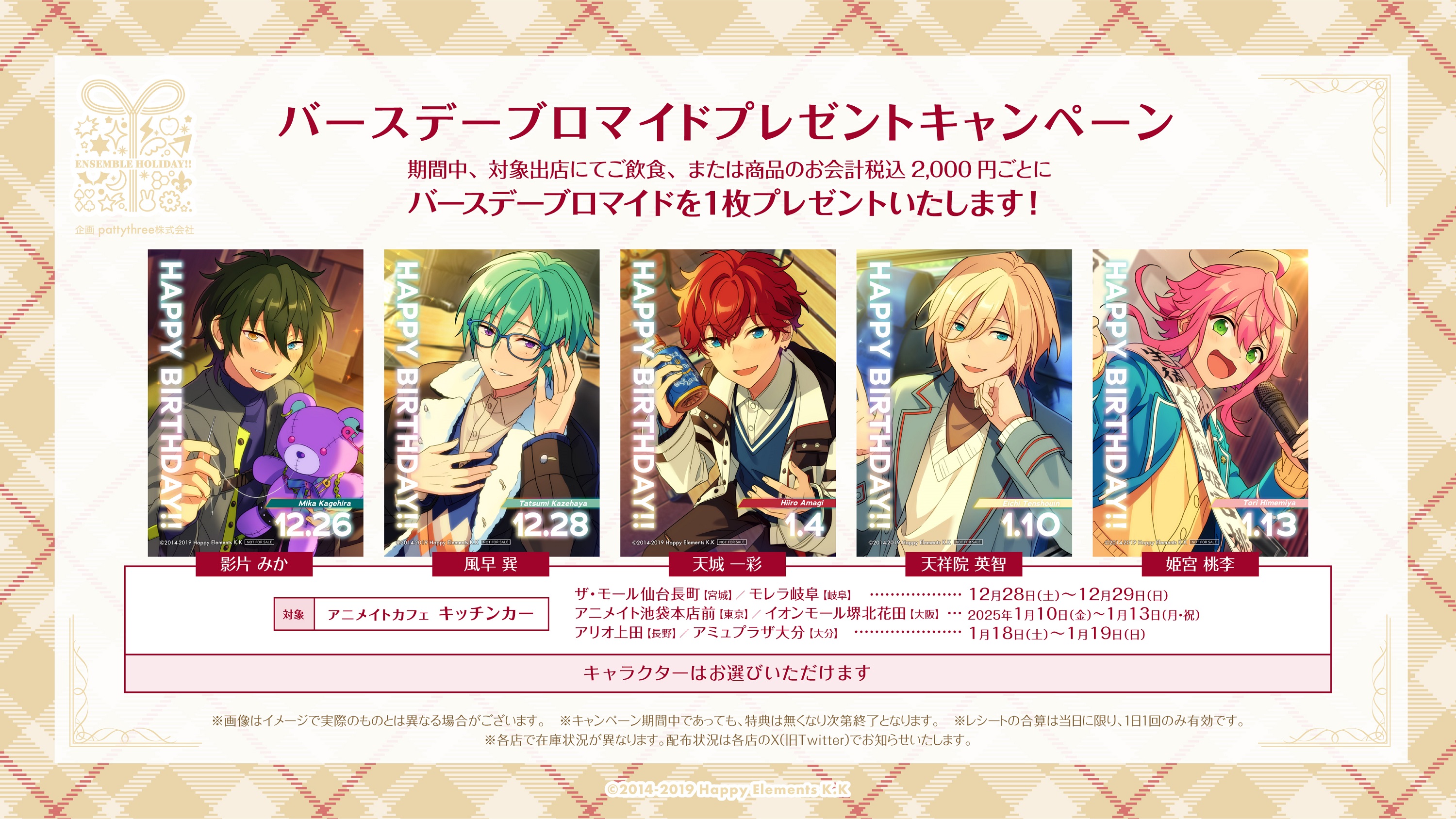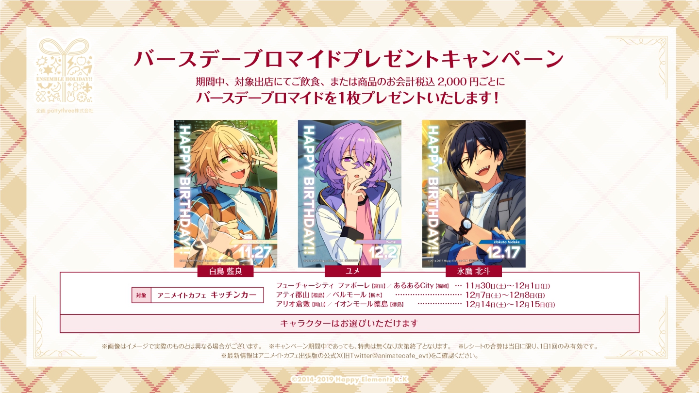 アニメイトカフェ総合 on X: "〖 あんさんぶるスターズ!!〗⋆ コラボ詳細 第三弾 ⋆店舗キャンペーン情報を公開!🎁🎂バースデーブロマイドプレゼント ✉️ホリデーカードプレゼント 🔽詳細はこちら https:t.co z2UQgtAbmbあんスタhttps:t.co。