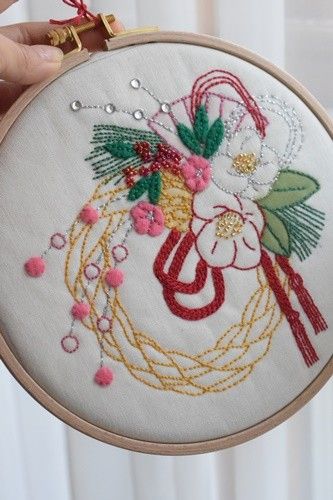お正月の刺繍 鏡餅、神楽、破魔矢も北欧刺繍教室 Roset 北欧の手工芸エスカ by つれび工房。