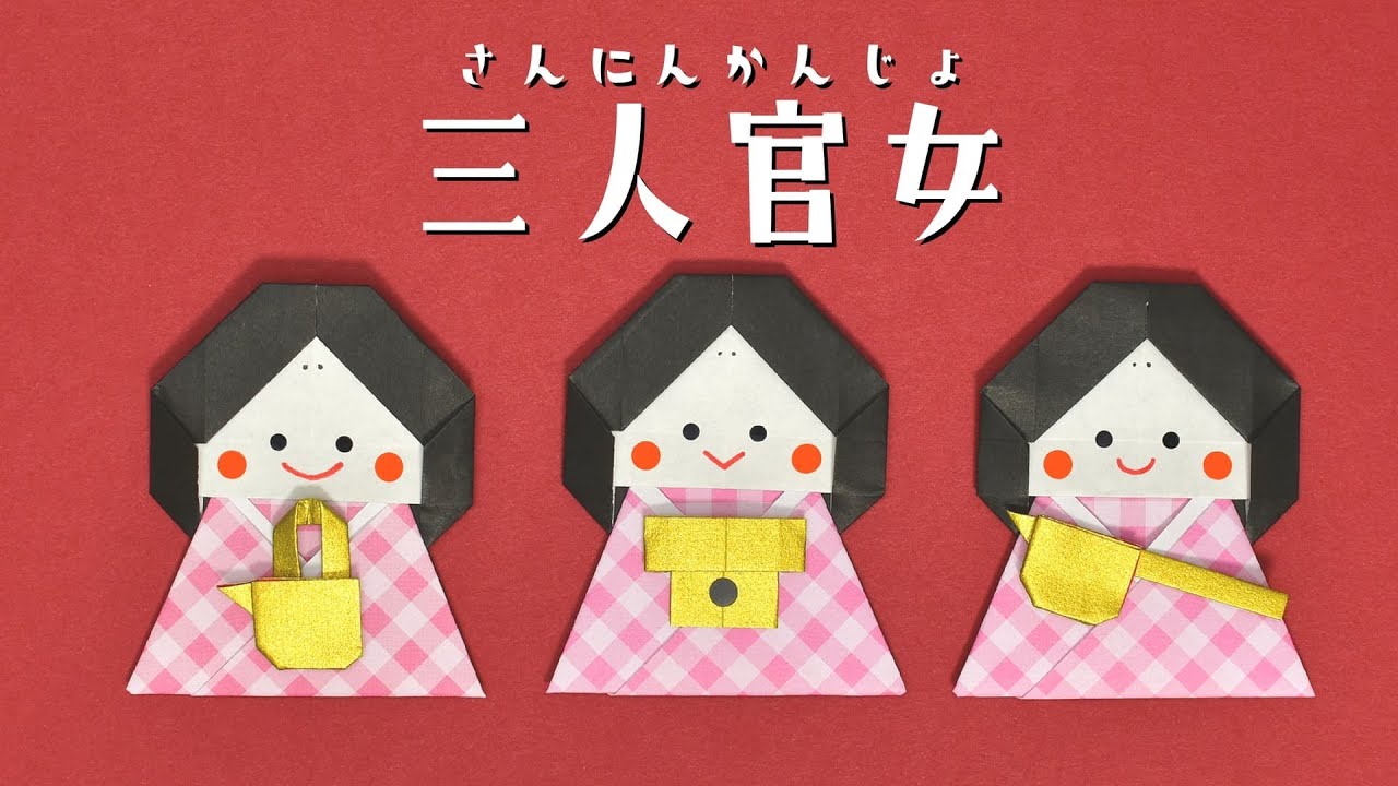 三人官女の折り紙の折り方は簡単!可愛い雛人形でひな祭りを華やかに♪│子供と楽しむ折り紙・工作。