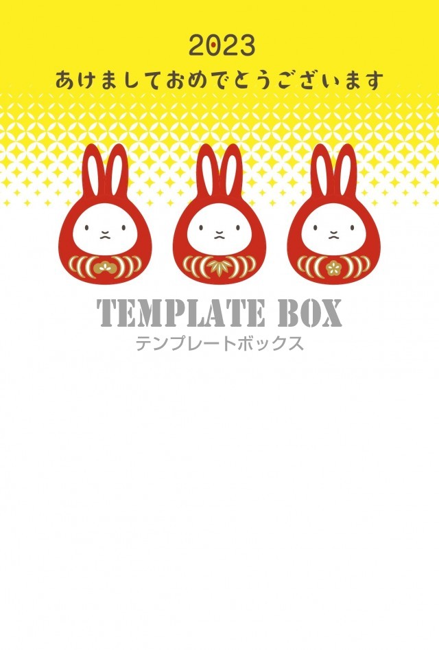 2023年賀状デザイン無料テンプレート「かわいいウサギの家族と松竹梅」無料フリーイラスト素材集 Frame illust。