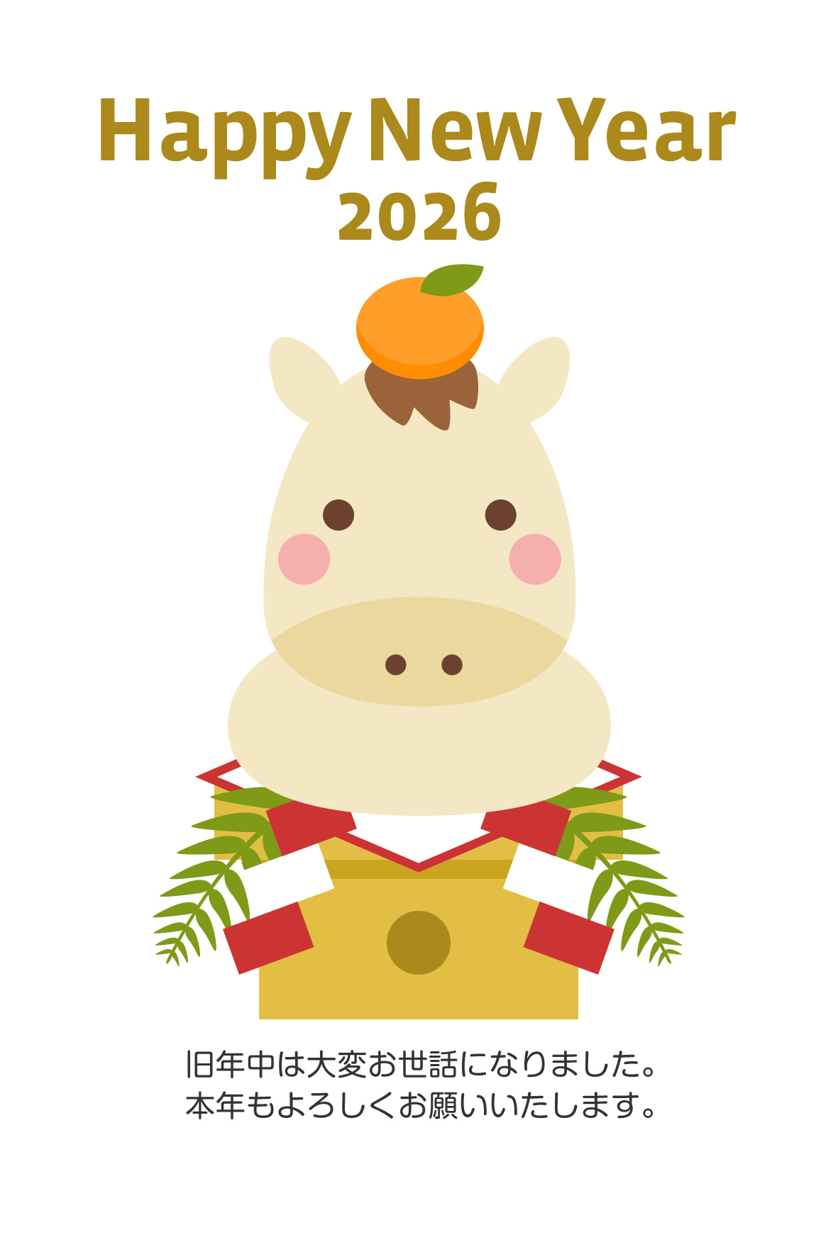 かわいい」2026年 年賀状の無料テンプレート・デザイン・イラスト うま年・令和8年- ネット印刷グラフィック。