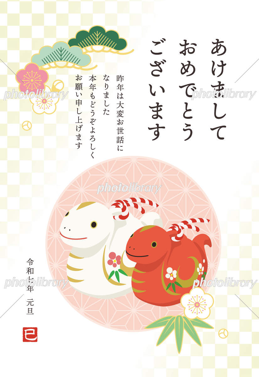 かわいいヘビの土鈴 巳年の年賀状テンプレート 添え書きありイラスト素材7540687- フォトライブラリ。