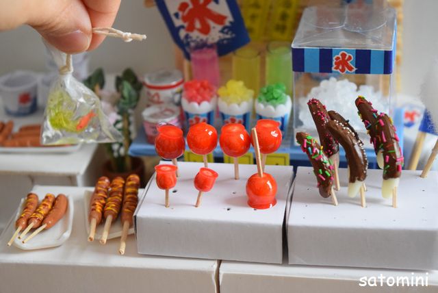 6月は「夏祭り屋台」金魚、りんご飴、チョコバナナ、フランクフルトを粘土で作ろう♪Satominiのパリでミニチュア粘土☆想いを形に♪ LaPetite Masion+α。