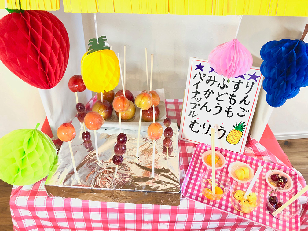 最短で完成 フルーツ飴おうち縁日夏祭りごっこ縁日ごっこ夏まつりごっこ保育制作保育ネタかんたん工作。