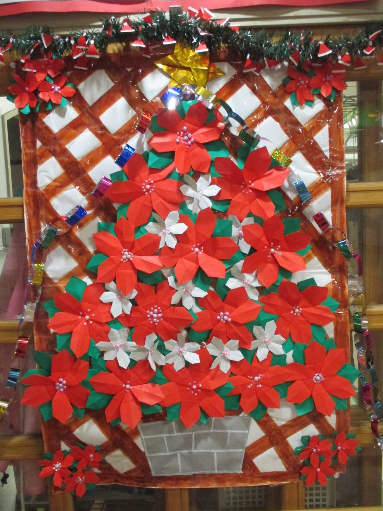 12月壁面飾り ポインセチアクリスマス飾り 簡単 12月 ポインセチア壁飾り 高齢者レク。