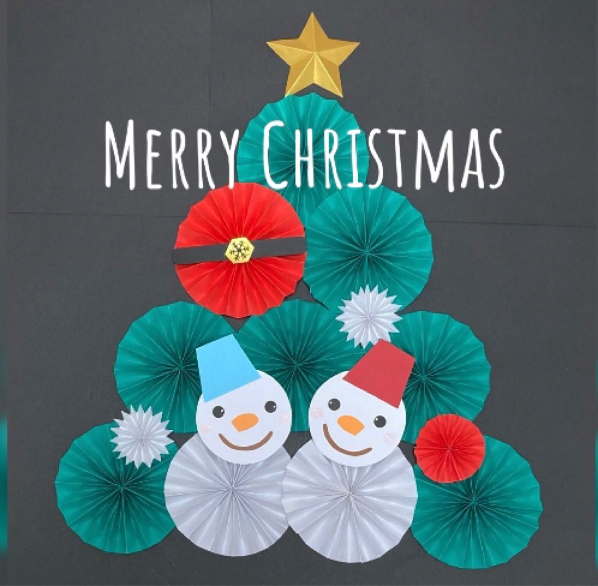 工作ネタ 簡単クリスマスツリーChristmas tree 12月冬壁面飾り高齢者レク・作業療法OT・デイ・保育おりがみ 創作DIYpapercraft簡単立体。