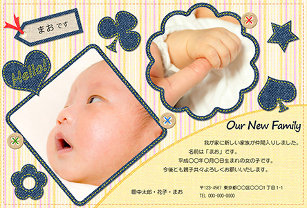 出産報告 はがきデザイン見本即日印刷プリントメイト。