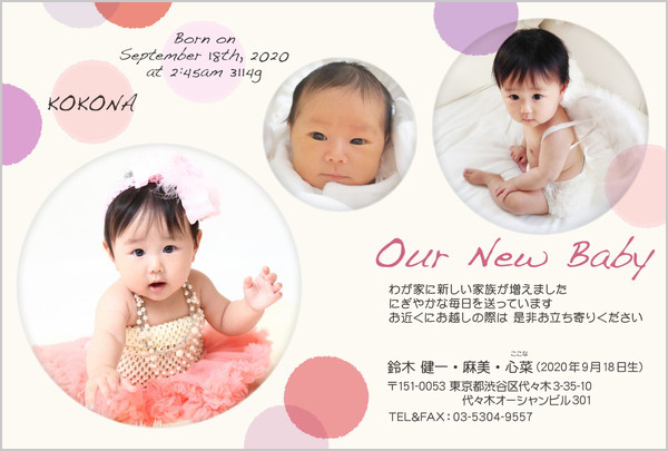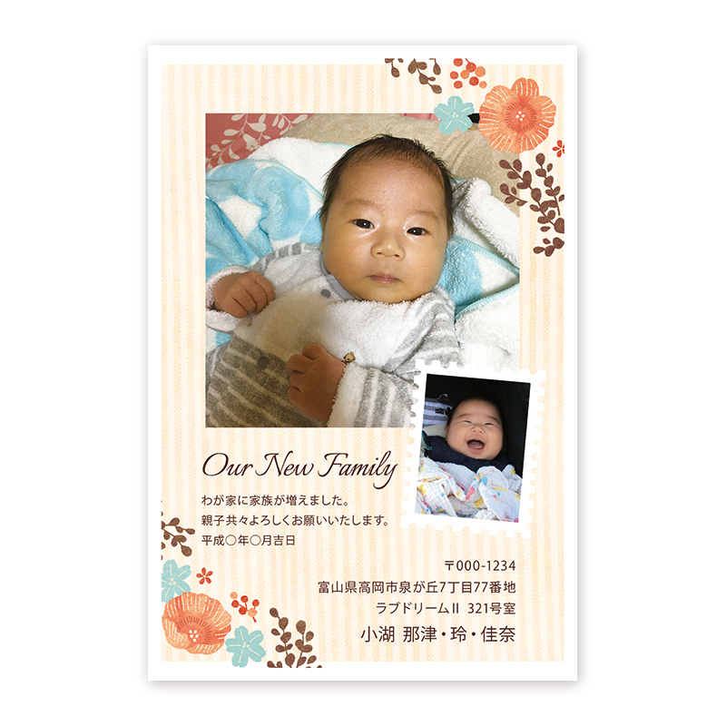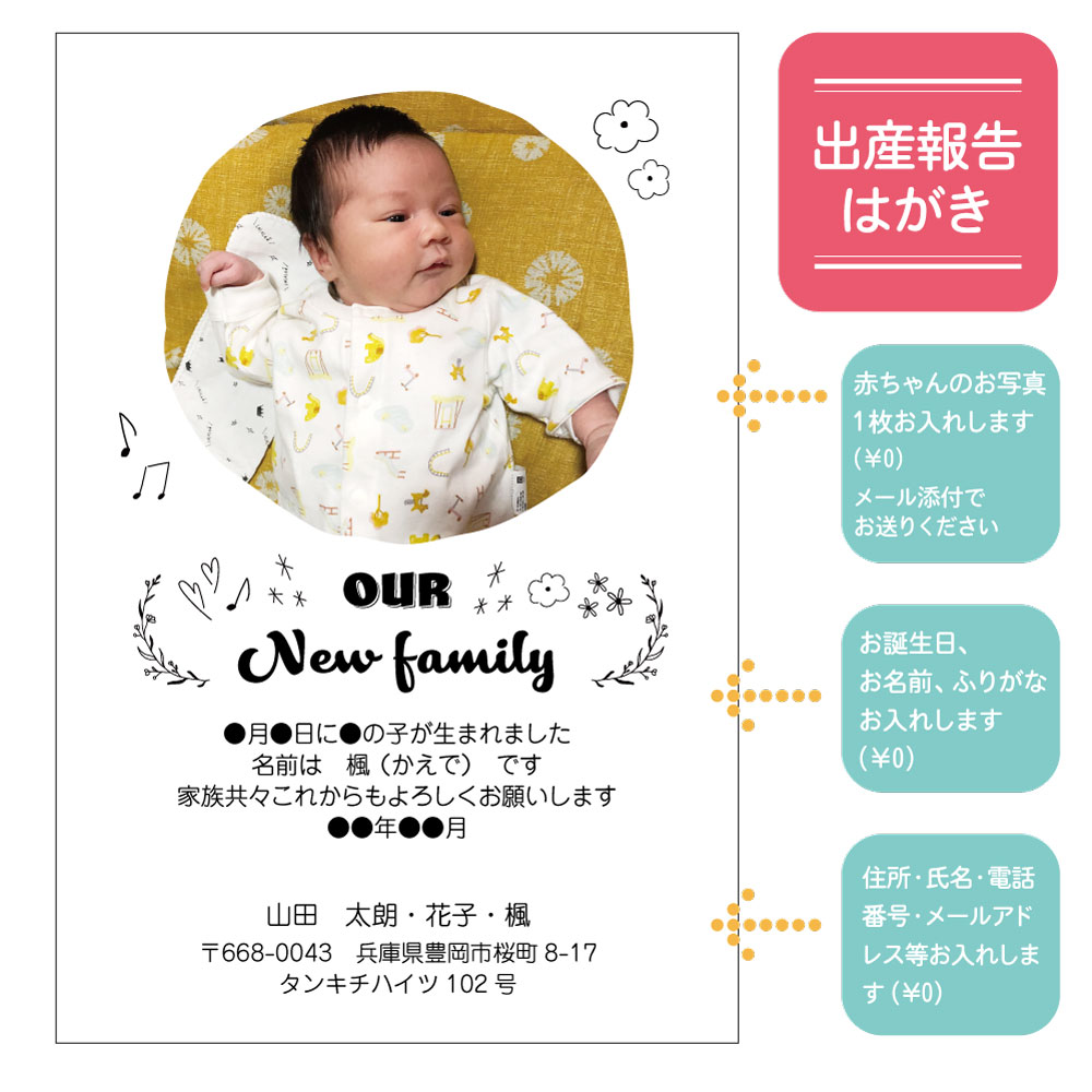 誕生のお知らせ 01出産報告はがき挨拶状はがき印刷から投函まで「まかせて楽チン」ウェブポ。