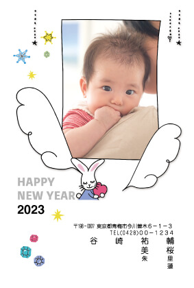 写真入り かわいい天使の出産報告年賀状bizocean ビズオーシャン。