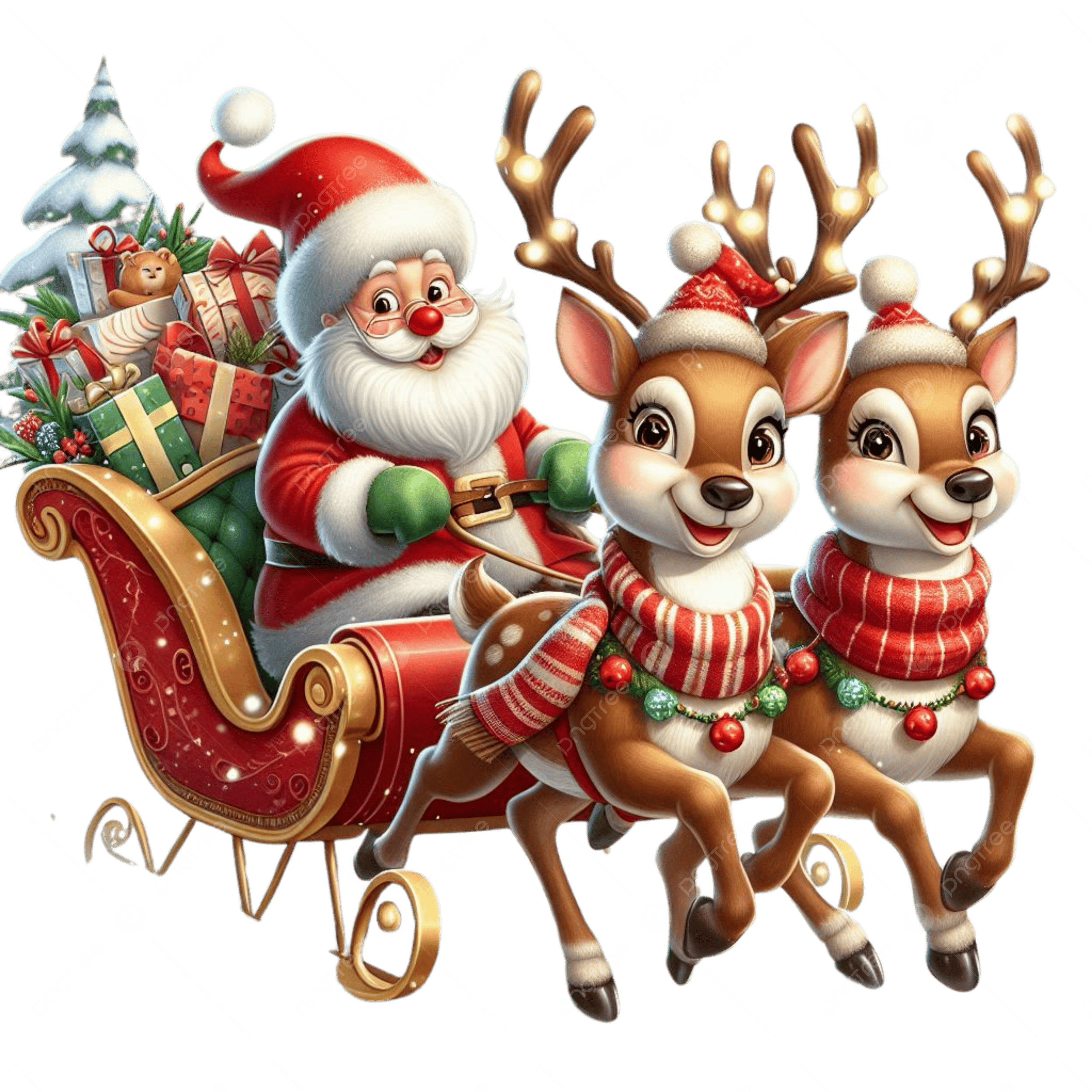 クリスマスプレゼントを届けるサンタクロースとトナカイイラスト素材透過、PNGフリー画像ダウンロード - Pngtree。