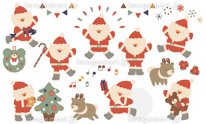 かわいいサンタクロースとトナカイのクリスマスキャラクターイラスト02のイラスト素材FYI08132221ストックフォトの QleanMarket キュリンマーケット。