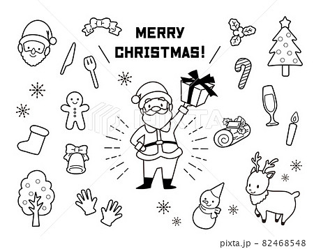 サンタクロースイラストとメリークリスマスモノクロおしゃれ手書き文字 イラスト素材7385032- フォトライブラリ。