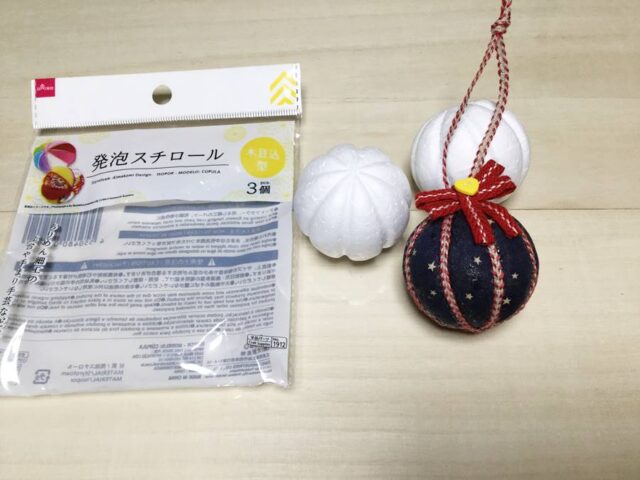 ダイソーの発泡スチロールボールでクリスマスオーナメントボールの簡単な作り方ハンドメイドの翼。
