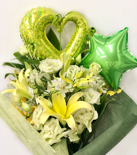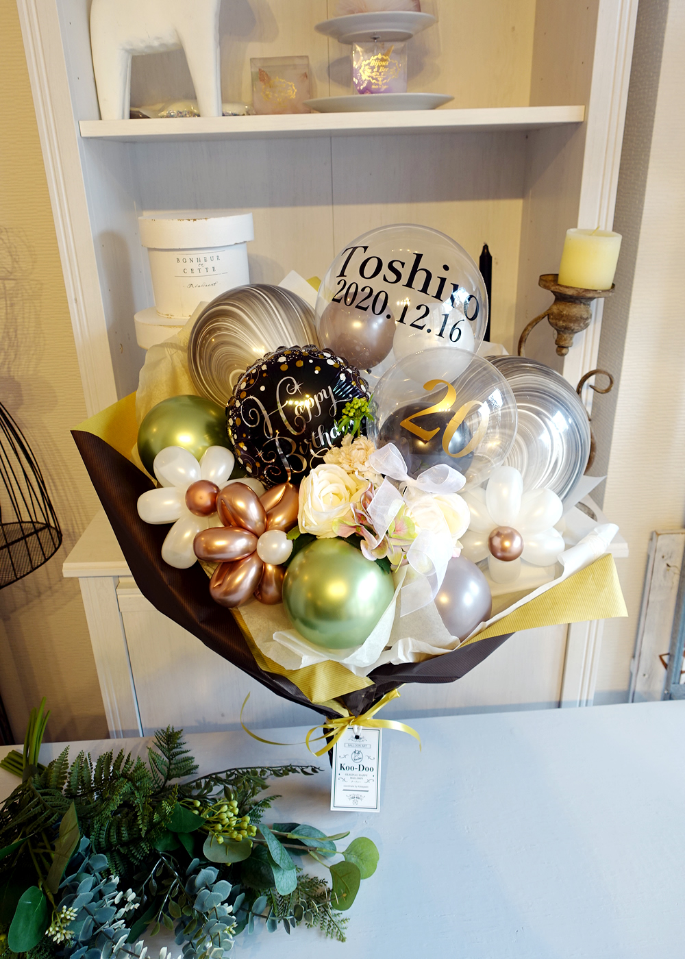 バルーン花束 ブラックマスタード 誕生日 卒業式 成人式 お祝い お名前・メッセージ&数字をお入れします。