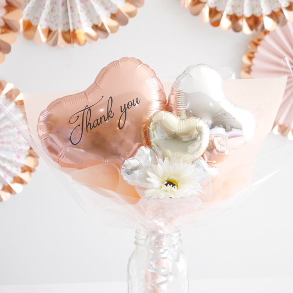 ちょっとした贈り物にキラキラのクリアバルーンとお花がかわいいミニバルーン花束 プティット -バルーンギフトのモモノバルーンオンライン。