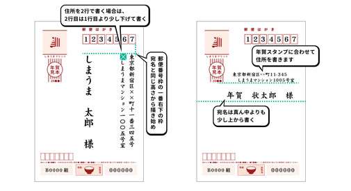 年賀状・挨拶状ハガキでの宛名・住所書き〜書き方、番地は漢数字・算用数字、改行、差出人名は表裏、注意点などこれからの。