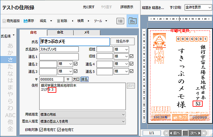 宛名印刷のレイアウトについて挨拶状.comマイページ。