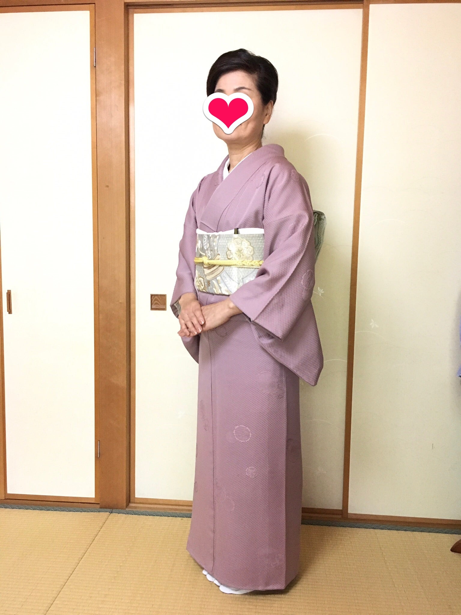訪問着のお着付け 染め変えた色無地でご友人の披露宴列席高橋美登里礼法きもの学院。