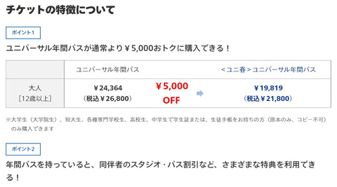 2025年 ユニ春 \年パス・1デイパスが学割価格で買える- いわ ユニバ情報。