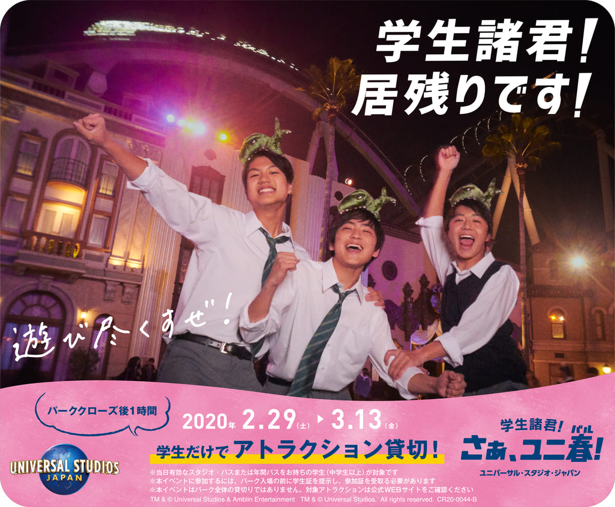 USJ、学生応援キャンペーン「ユニ春 バル 」2月1日~4月7日 今年は「学生限定 アトラクション貸切ナイト」が復活 - トラベル Watch。