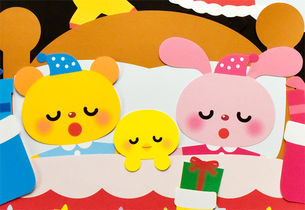 壁面飾り工房本店 壁面装飾・パネルシアター・ペープサート・型紙・知育・保育・介護商品の販売☆壁面飾り工房 横120cm 「クリスマスの夜に」冬11月 12月 幼稚園 保育園 学校 病院 施設 知育 壁面装飾 型紙 製作☆。