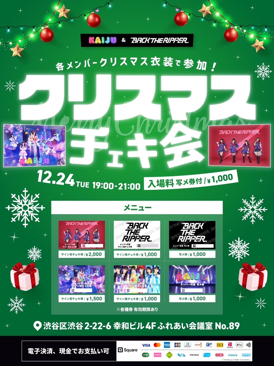 KAIJU ON THE STAGE 3rd SEASONサマジャンメイン争奪優勝🏆on X: "12 24 水クリスマスチェキ会📍渋谷区渋谷2-22-6 幸和ビル4F ふれあい貸し会議室 No89 🕰️19:00-21:00 🎫入場料1,000円写メ券付き ※予約不要https:t.co 109tcm0We7"X。