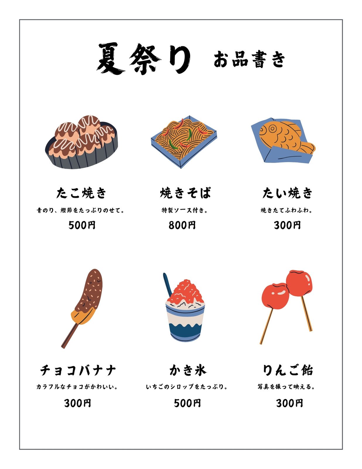 夏祭り メニューイラスト無料イラスト・フリー素材なら「イラストAC」。