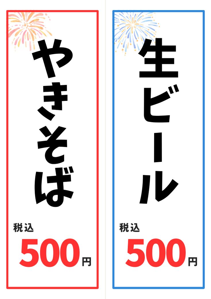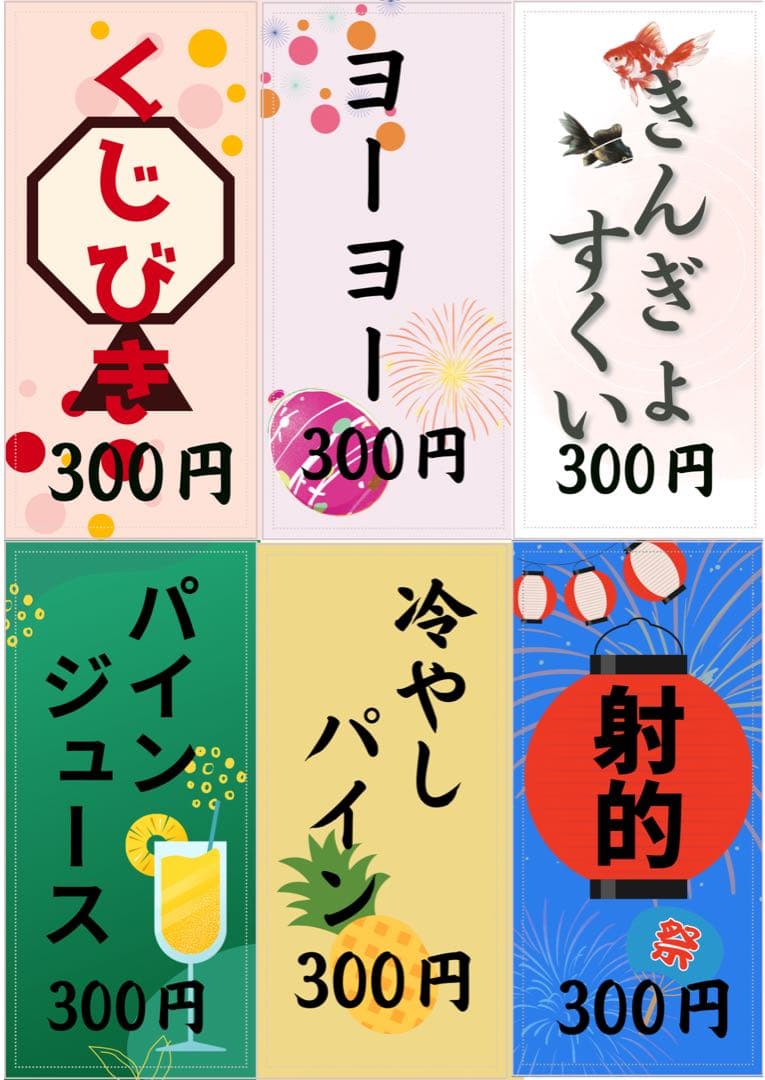フリー素材 祭に!バザーに!価格が書ける屋台ポップ&引換券erink。