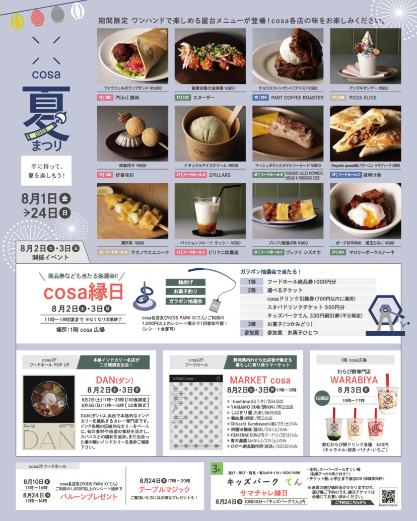 EVENT ワンハンド&お手頃価格でcosaの味を楽しむ!cosa夏祭り開催!!cosa。