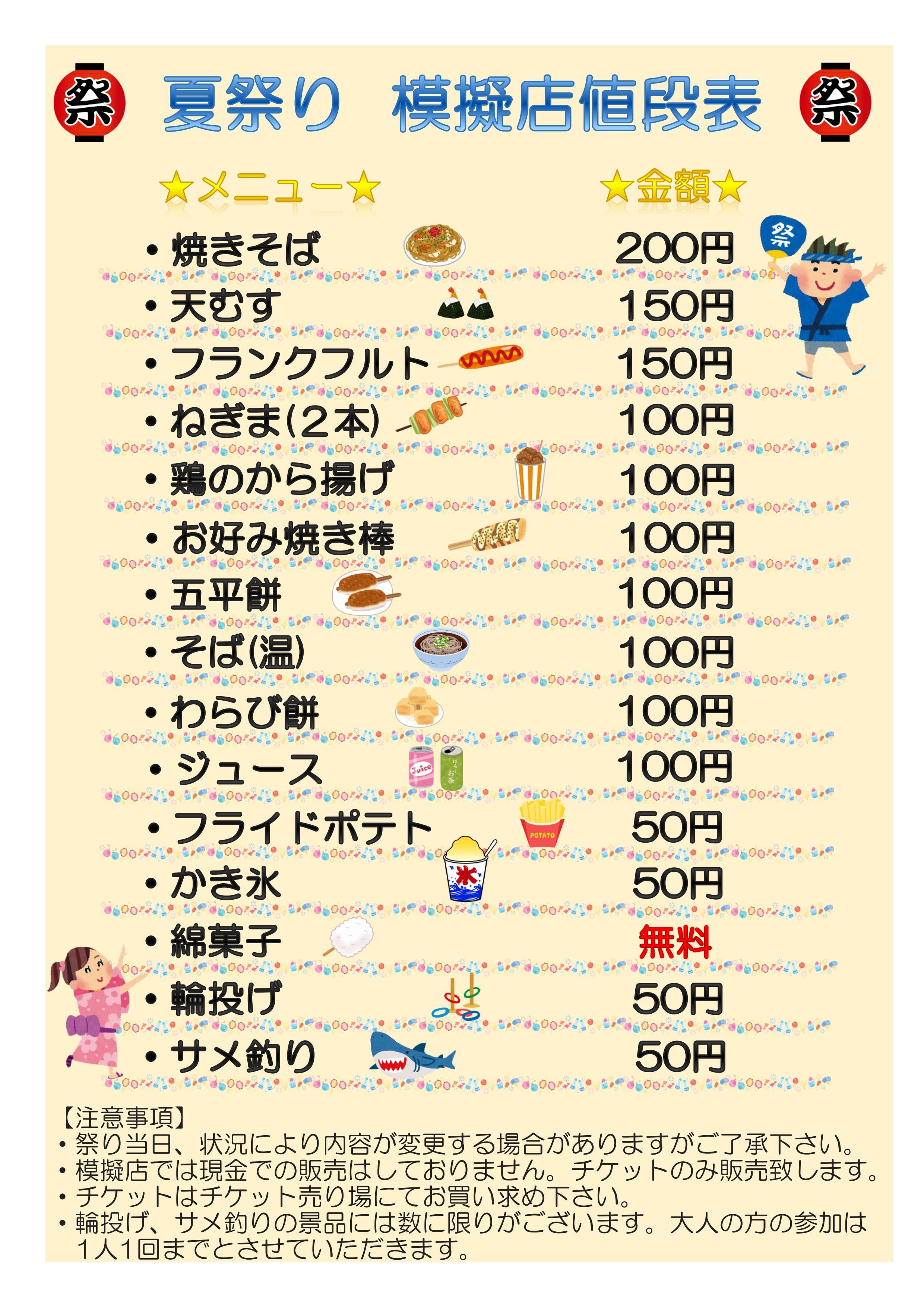 お品書きメニュー表お祭りおうち縁日夏祭り屋台保育介護施設児童館2。