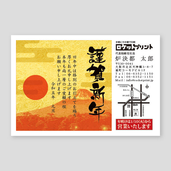 横向きの初日の出年賀状の無料年賀状テンプレート 8827 - デザインAC。