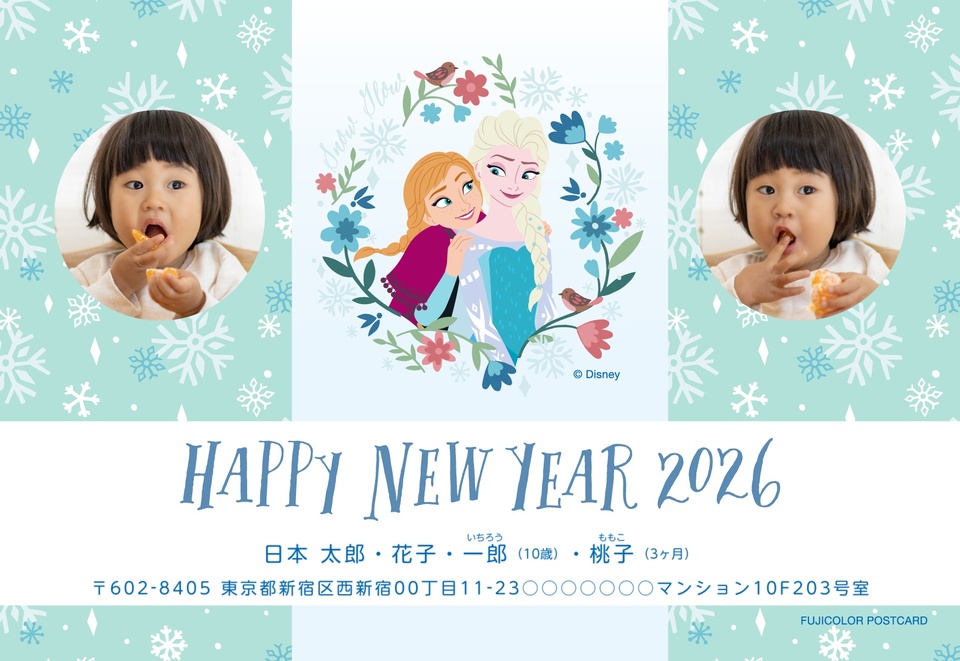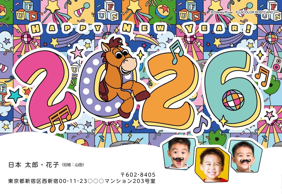 年賀状デザイン NPD011ディズニー・横向き2026年 午年の年賀状印刷はしまうまプリント。