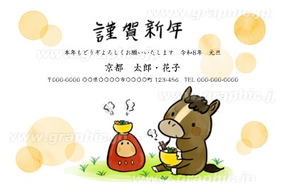 横向き」2026年 年賀状の無料テンプレート・デザイン・イラスト うま年・令和8年- ネット印刷グラフィック。