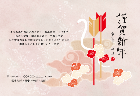 花札調ユニークデザイン・横 - 2025年巳年賀状デザイン:印刷のロケットプリント。