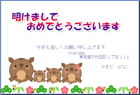 横向き3匹の干支年賀状の無料年賀状テンプレート 8825 - デザインAC。