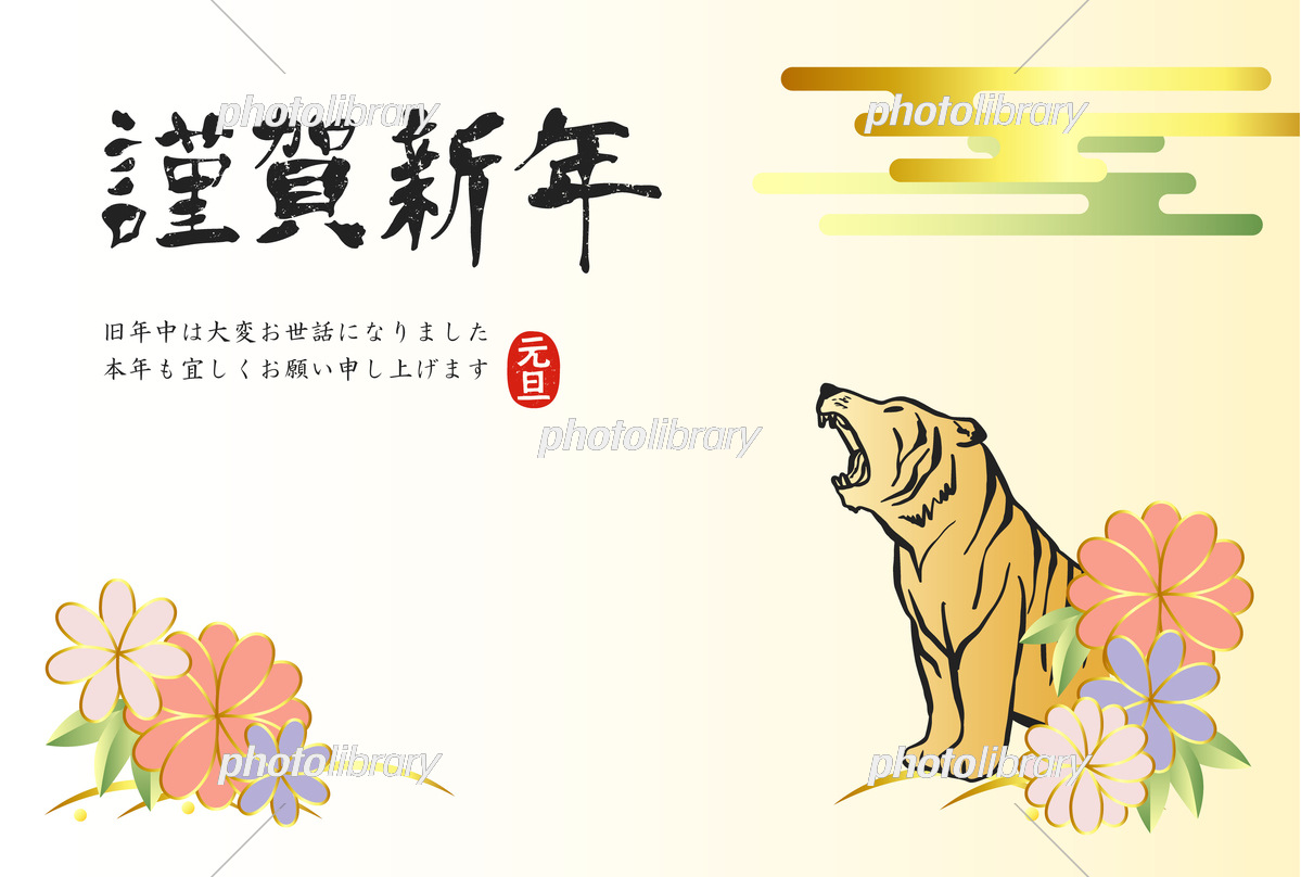 年賀状素材 寅年 横向き イラスト素材6932097- フォトライブラリ。