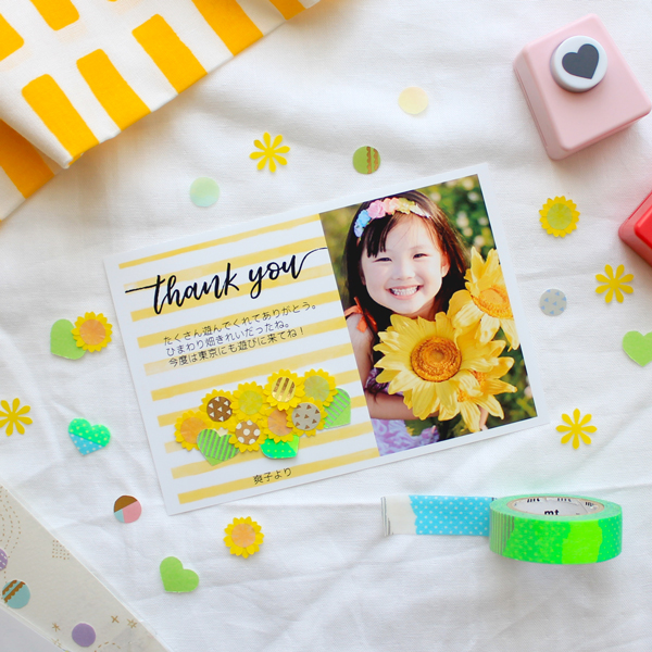 無料テンプレートで誰でもオシャレに出来る!手作りひまわりで夏のカードThankyou Works Blog。