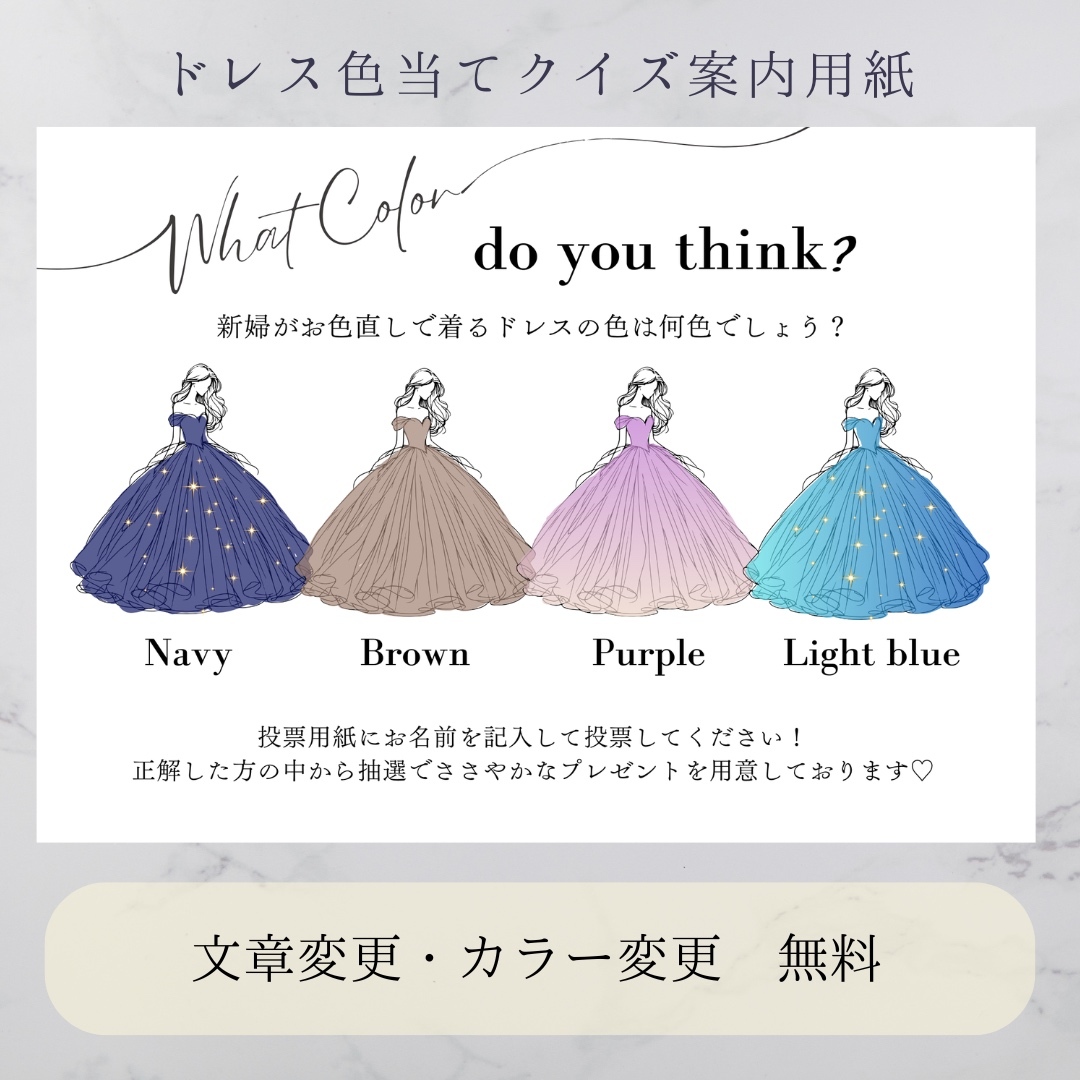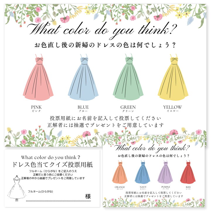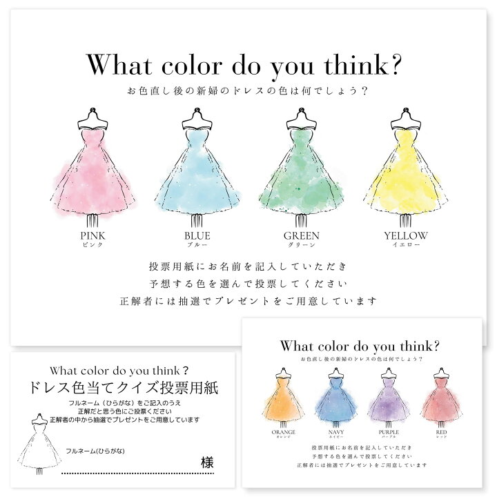 オーダー 結婚式ドレス色当てクイズ案内用紙 投票用紙 - yum *minne byGMOペパボ 国内最大級のハンドメイド・手作り通販サイト。