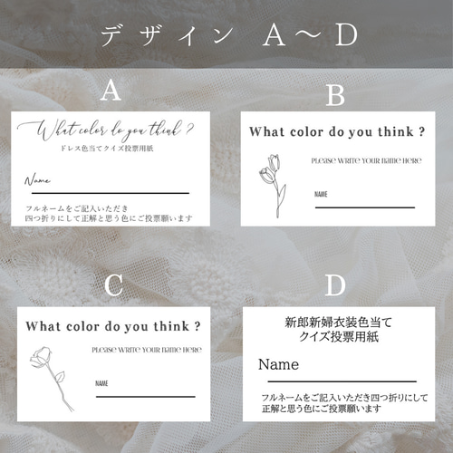 ドレス当てクイズ 投票用紙 20名様分 文章変更無料 オーダー その他オーダーメイド la poire通販15044004Creema クリーマ。