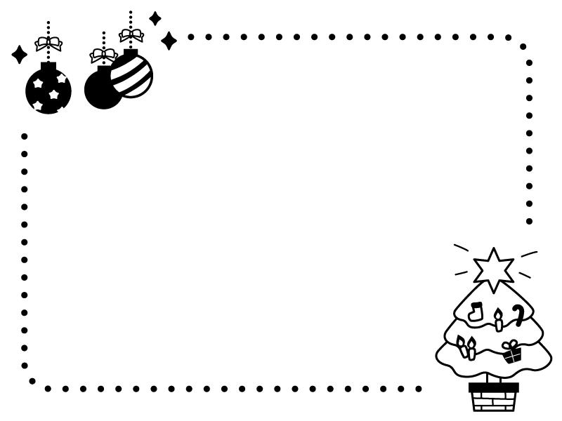 クリスマスツリーとオーナメントのフレーム・枠の白黒イラストかわいい無料の白黒イラスト モノぽっと。