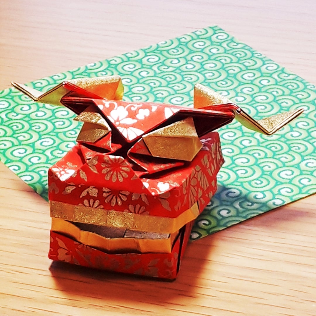 お正月折り紙 獅子舞の折り方*が直立できる! Origami japanese lion dance。