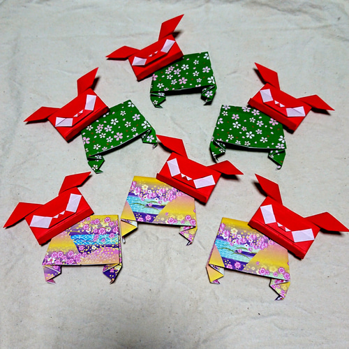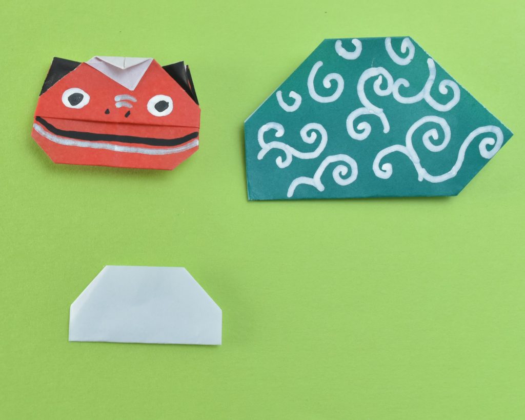 正月「獅子舞」折り紙New Year "lion dance" origami。