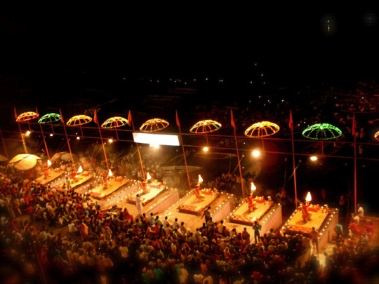 絶景Q No.113 ガンジス川の夜は毎日お祭り!インド「バラナシのプジャ 礼拝 」トジョウエンジン。