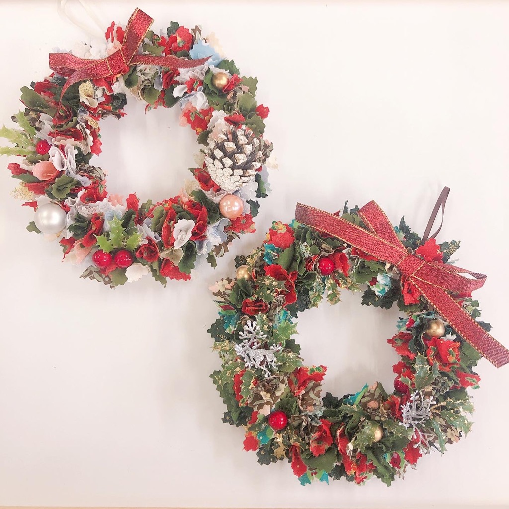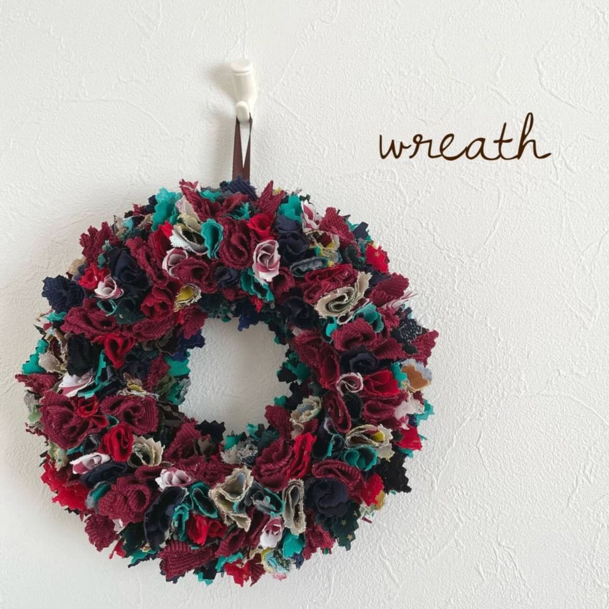ハロウィンが終わると次は クリスマス 。こないだの秋色リースに続いて クリスマスリース ♪なかなかいい感じじゃないですか~?布リースハンドメイドはんどめいどはぎれハギレリースリース作り。