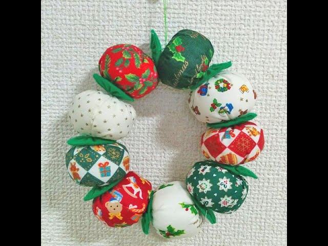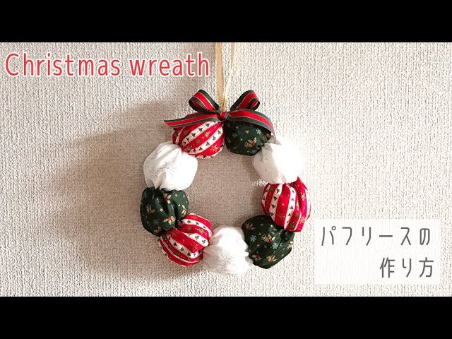 布で作るクリスマスリース パフリース の作り方 ハギレ使用!手縫いでも作れる How to make a fabric Christmas wreath。