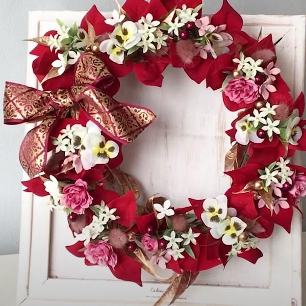 フラワーリース クリスマスリース 布リース ファブリックリース。